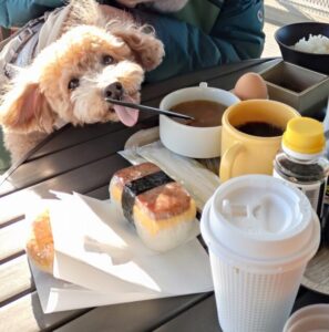 おっとうのランチをねらっています
